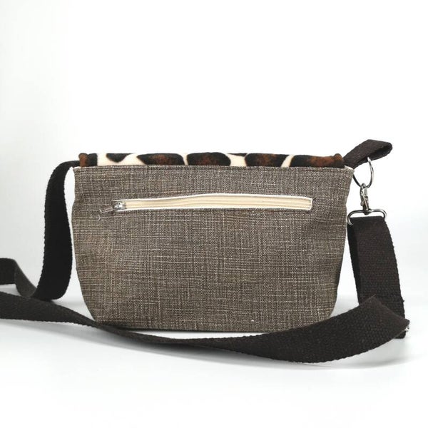 Je suis une jolie sacoche entoilée en polycoton pour le rabat et le tissu extérieur et doublée en 100% coton.