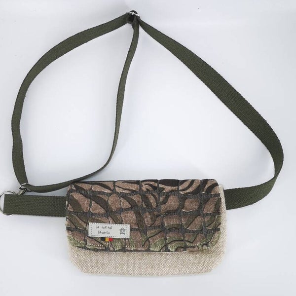 Je suis une jolie banane avec rabat en tissu polycoton et doublée en coton, avec poche extérieure zippée et femeture magnétique.